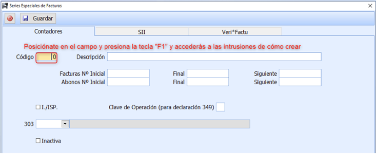 Estos campos se deben consultar con el asesor fiscal quien debe confirmarlo.