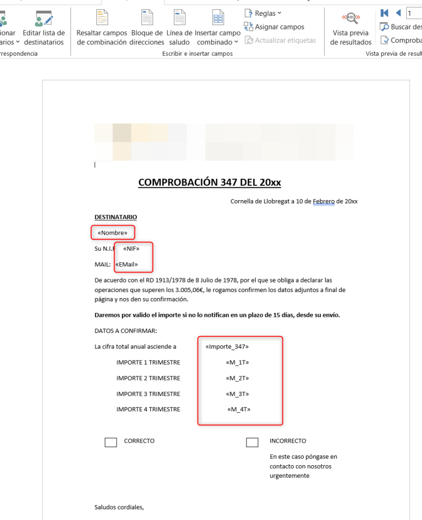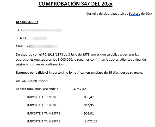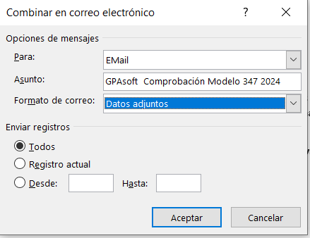 Una vez generado el archivo del Modelo 347 (guía) podremos realizar un envío de carta/email para nuestros clientes;