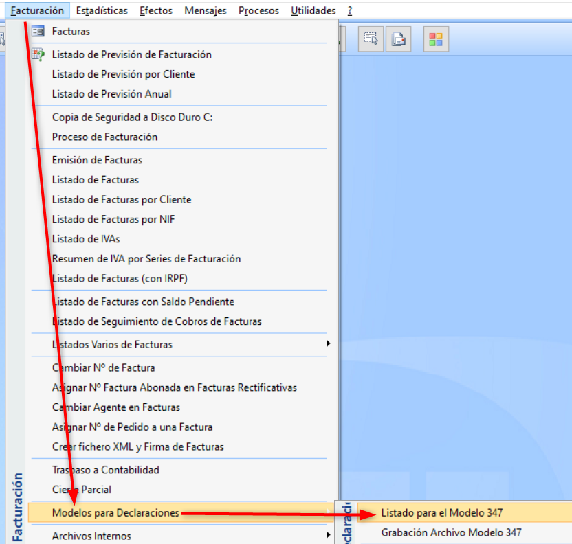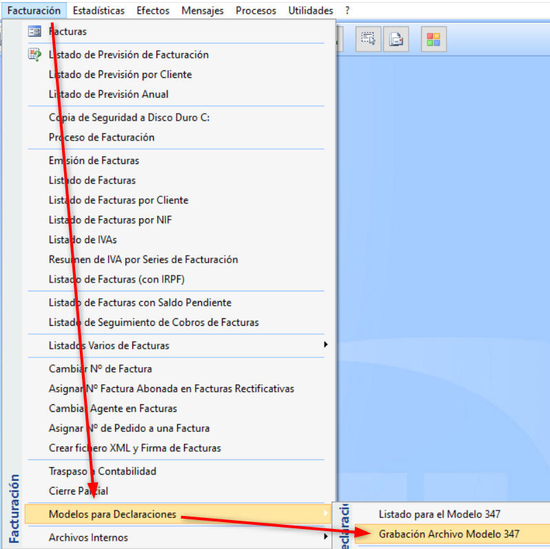 4. Para Grabar el Modelo 347, debemos ir a la siguiente opción;