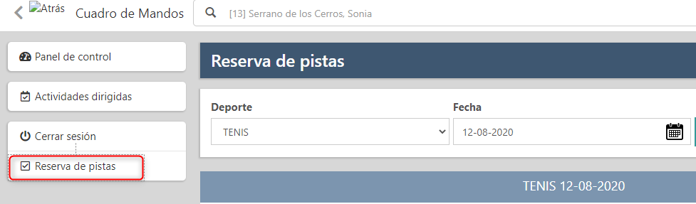 • Cuadro de mandos. Reserva de recursos (pistas)