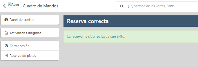 Una vez se seleccione «Reserva» automáticamente la Reserva quedará completada y visible tanto en el panel de Control como en la oficina virtual