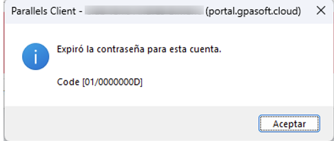 • Contraseña puntual para «Expiración contraseña Parallels»