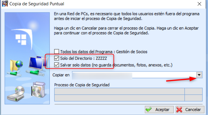 En copia: Indicar la ruta donde deseamos guardar la copia, deberá ser una carpeta previamente creada.