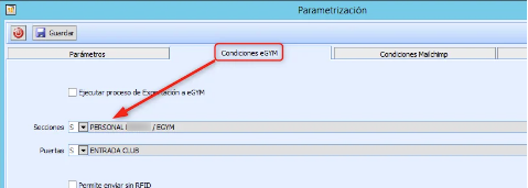 Siempre podremos añadir o quitar Secciones de Socios para el envío de información al módulo eGYM;