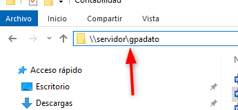 Aqui no está idnicando que la GPADATO está en la ruta \\SERVIDOR por tanto iremos a buscar ficha ruta a traves del Explorador de Windows;