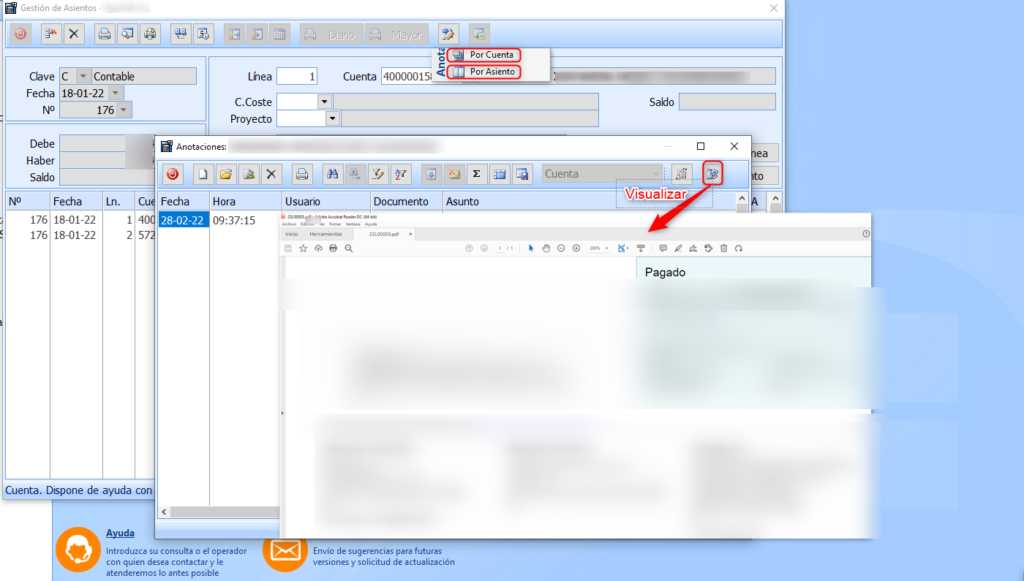 • Visualizar en el programa PDF facturas Proveedor/Acreedor