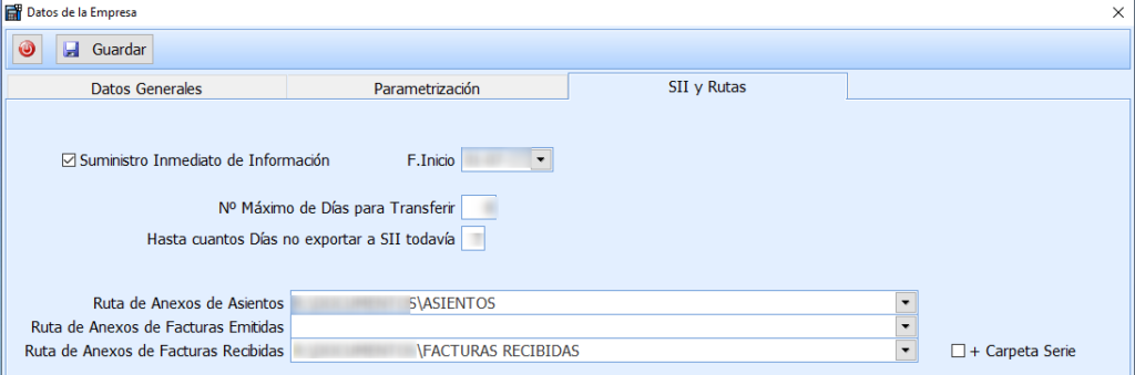 • Crear series facturas recibidas