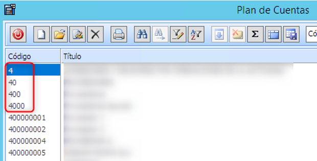 En el Plan de cuentas, para dar de alta una cuenta tenemos que tener los niveles anteriores 1/2/3/4.