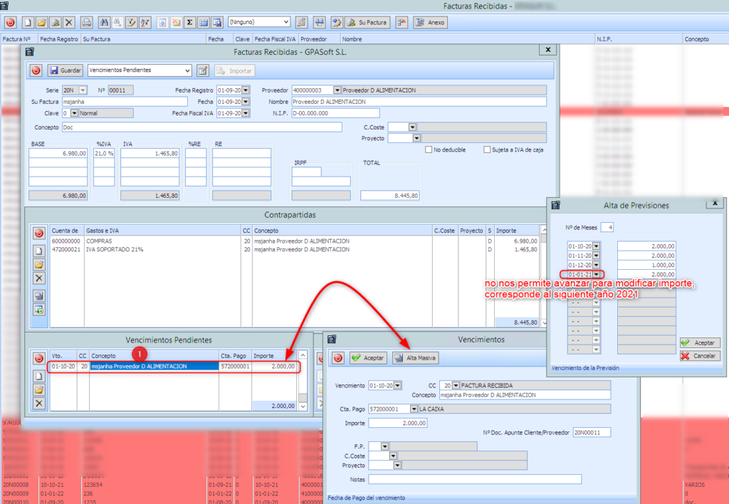 Estos 4 vencimiento, el programa no permite hacerlo masivamente, ya que uno es con fecha del próximo año (01/01/21).