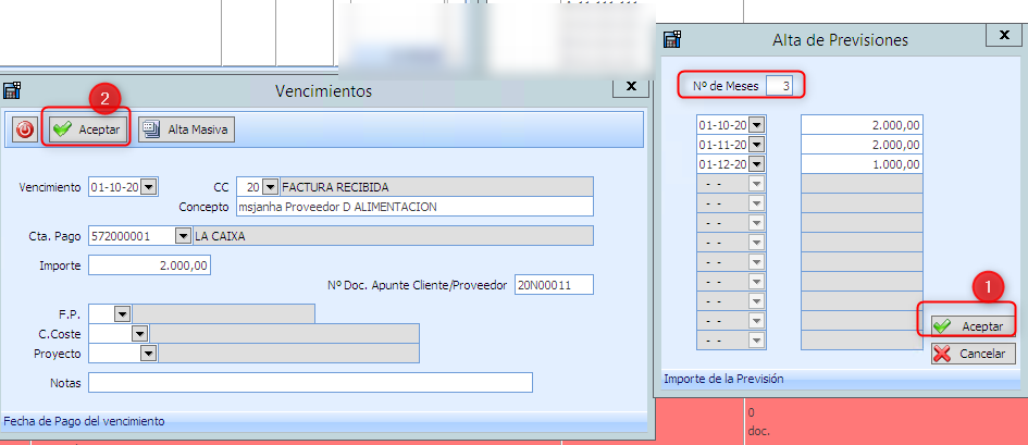 El programa permite dar masiva de alta vencimientos que corresponden al año en curso y manual los del próximo ejercicio.