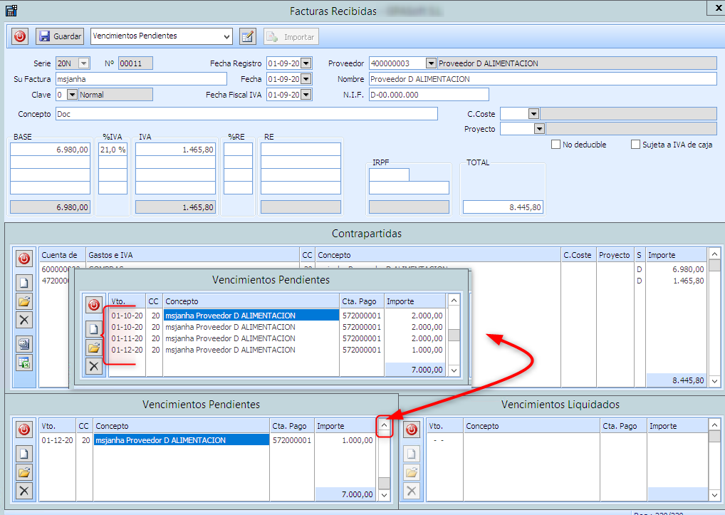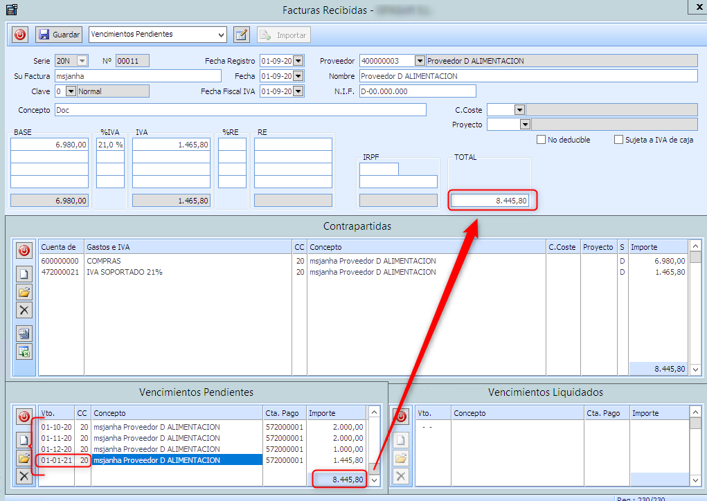 Si el importe es 8.445,80€, y es necesario realizar varios vencimientos.