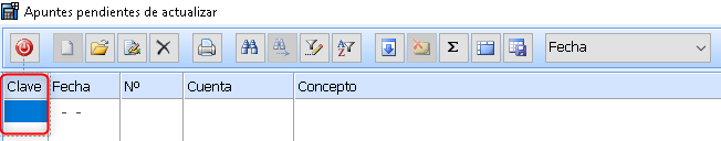 _ Mostrará todos los asientos pendientes de actualizar de esa clave con su número correspondiente.