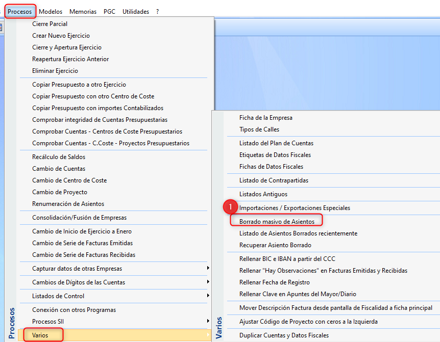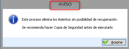 Importante: Borrado masivo de asientos, solo se puede utilizar en caso que los asientos sean correlativos.