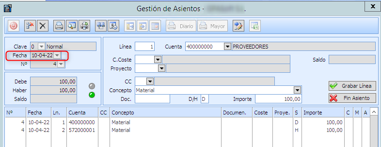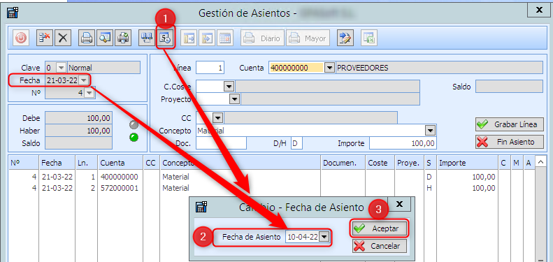 Importante: Nunca cambiar fecha de un asiento generado por el un registro de factura (libro IVA)