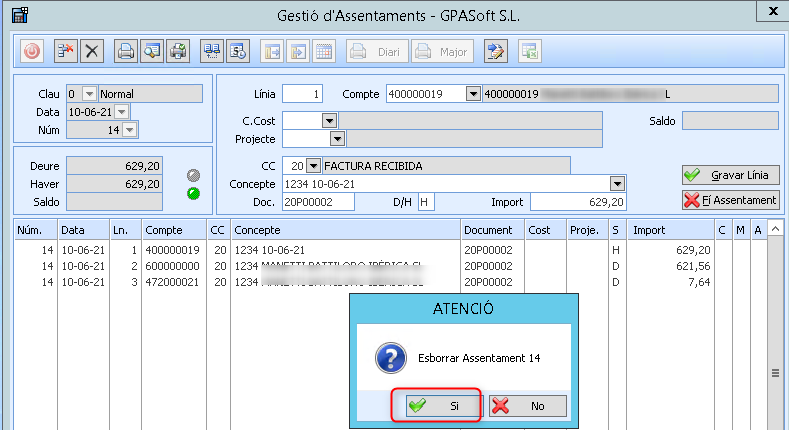 Cambio cuenta contableRecuperar asiento borrado reciente