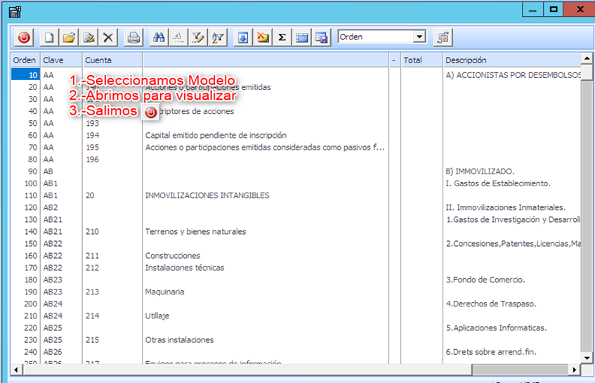 Abrir el modelo nuevo e introducir las ctas. a 2, 3 o 4 dígitos (como están el resto de cuentas), en la posición que correspondan (según os indique vuestro asesor).