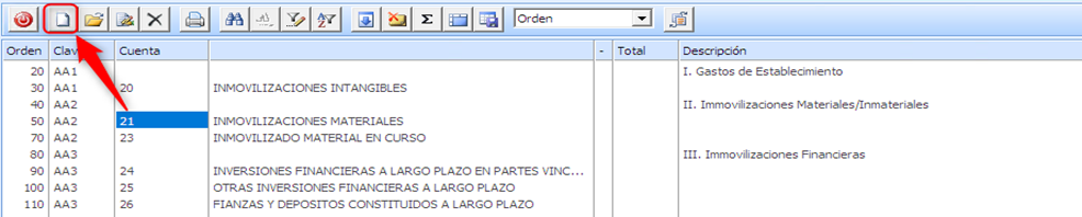 1.-Posicionarse en la fila superior de donde queremos introducir la nueva cta. coger hoja en blanco.