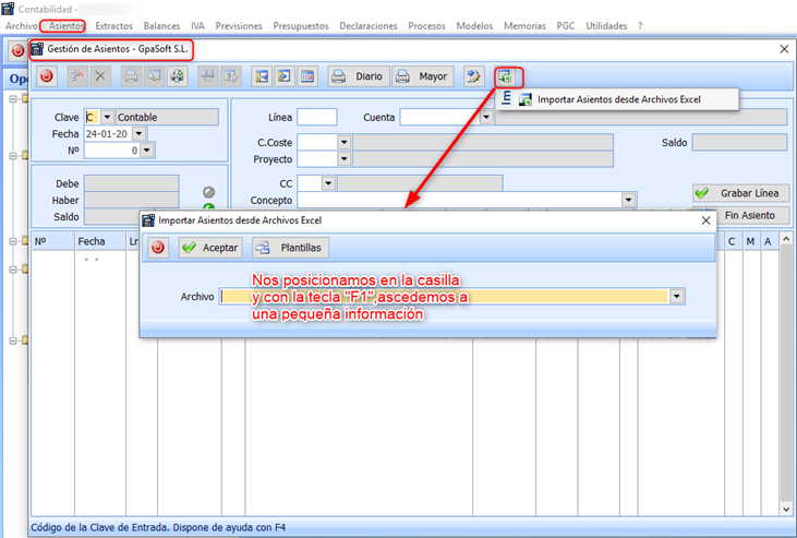 • Importar Excel en Gestión Asiento