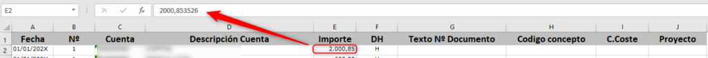 _ La hoja de Excel debe tener los formatos, importes, sumatorios total, etc, bien definidos, sino es así el programa no permitirá su captura.
