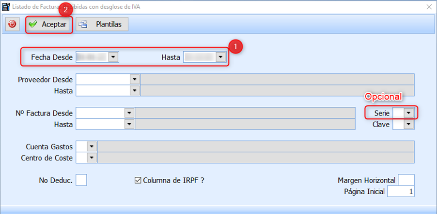 Seleccionar fechas y aceptar, el listado mostrara todas las facturas del periodo con las diferentes series que la empresa pueda tener.