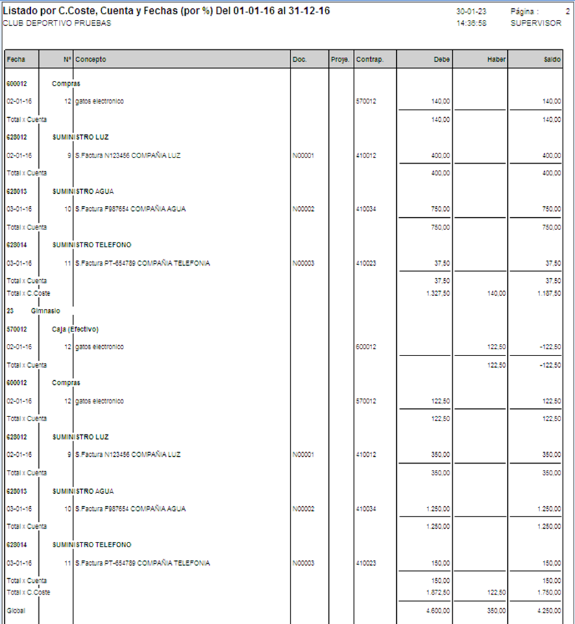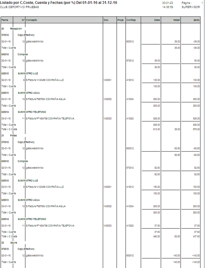 Listados y Balances con C.Coste