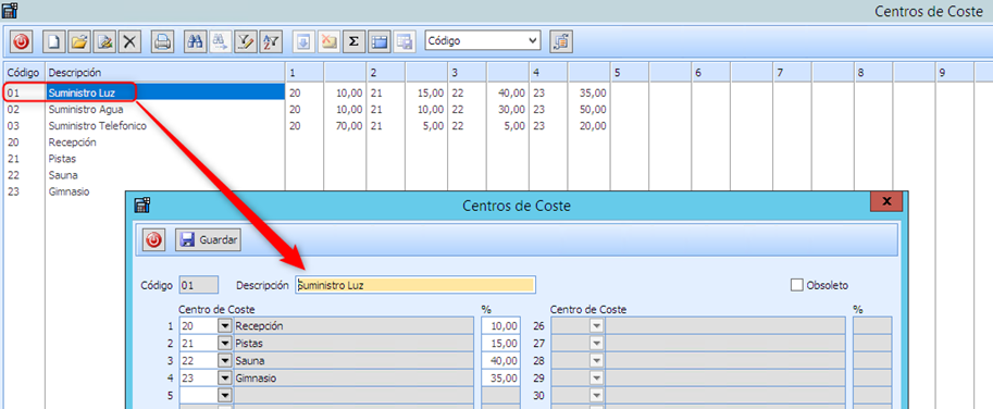 Se puede dar de alta de C. Costes 100% y C. Costes con reparto de %