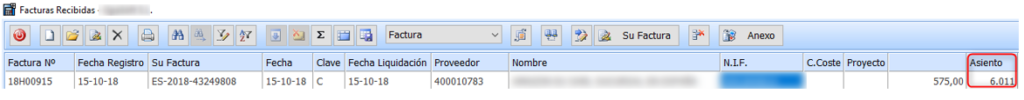 Buscar la factura y modificar, «proveedor, importes, etc.”, si la modificación afecta a los importes de las contrapartidas, se deberá entrar en cada una de las líneas.