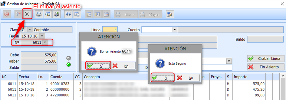 Guardar y volver a traspasar a contabilidad, se asentará en contabilidad con otro número de asiento.