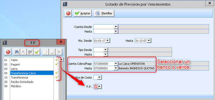 Se puede desmarcar cualquier vencimiento si finalmente se decide que no lo recoja el fichero.