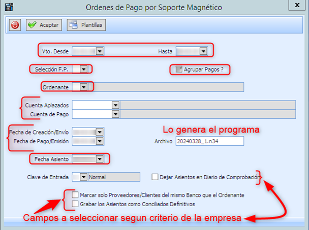 Si la empresa realiza más de un fichero al día y después por alguna razón mueve esos ficheros a otra carpeta, para que los ficheros no repitan la numeración, se aconseja no mover los ficheros hasta el día siguiente.