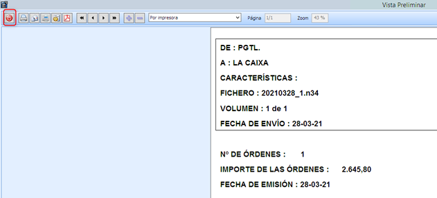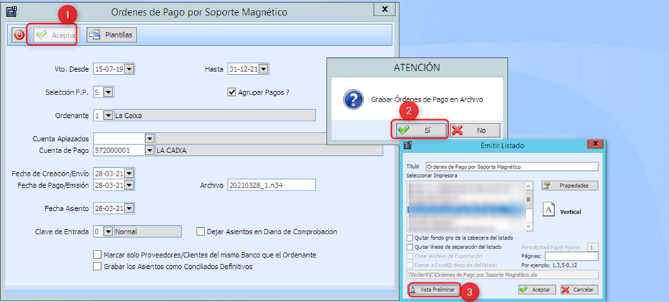 Importante: Si por error marcamos “NO”, el fichero de remesa se genera, pero los efectos no se asentarán en contabilidad, quedarán pendiente en previsiones, se deberá realizar el proceso de nuevo.