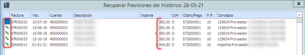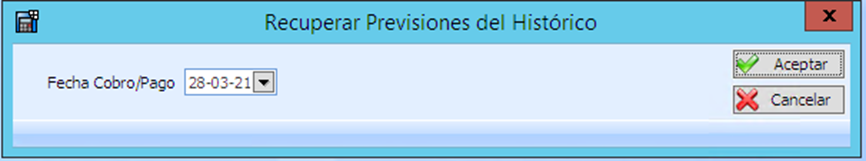 Esta opción recupera del histórico las previsiones, pero los asientos generados se deben borrar manualmente.