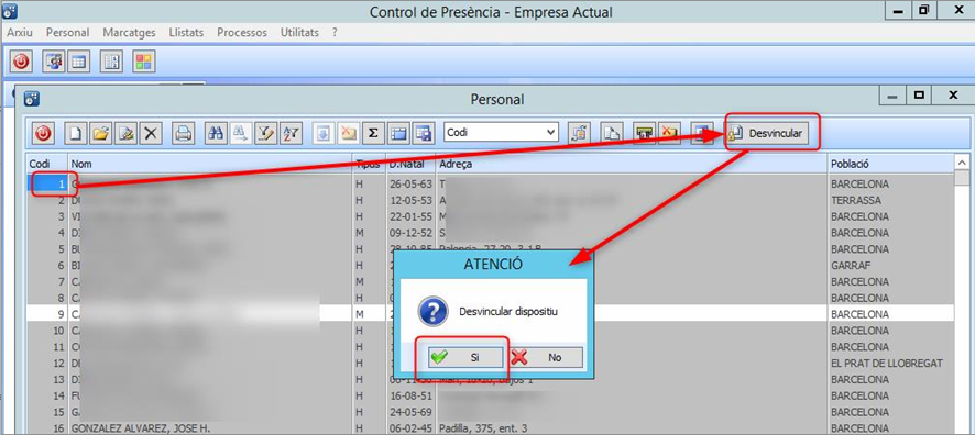 Si el personal cambia de móvil para realizar los fichajes del control de presencia, se debe desvincular el anterior dispositivo.